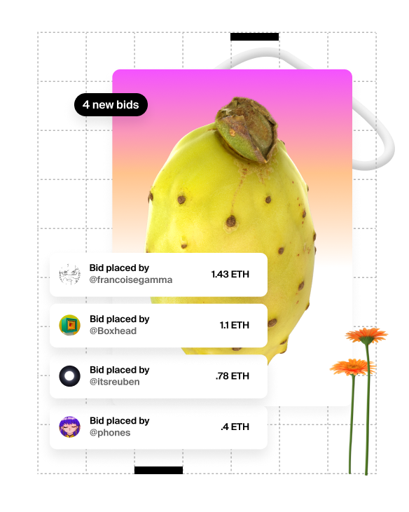 Set a reserve price and list any NFT for auction on Foundation. Once the first bid is placed, sit back and watch the final countdown with your community.